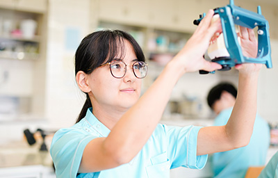 基礎的な知識や技術をはじめ、最新デジタル技術であるCAD/CAMシステムやインプラント等、幅広く学ぶことができます。実習を中心とした密度の濃いカリキュラムが編成されており、即戦力となる歯科技工士を養成しています。